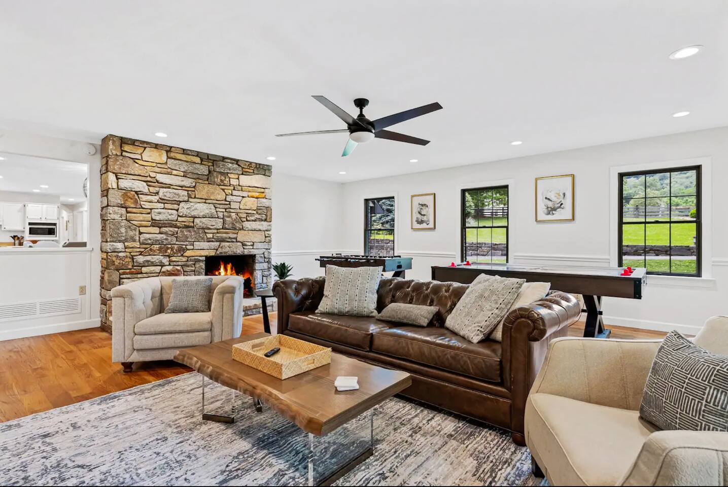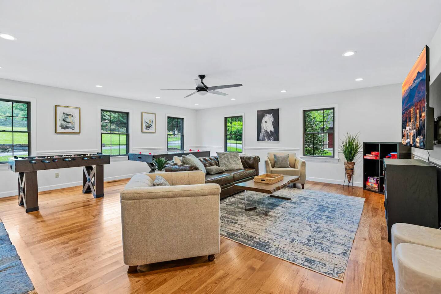 * **Lower Level:** A dedicated game haven with a pool table and ping pong table, alongside a fourth bedroom with a king bed and an adjacent full bathroom.