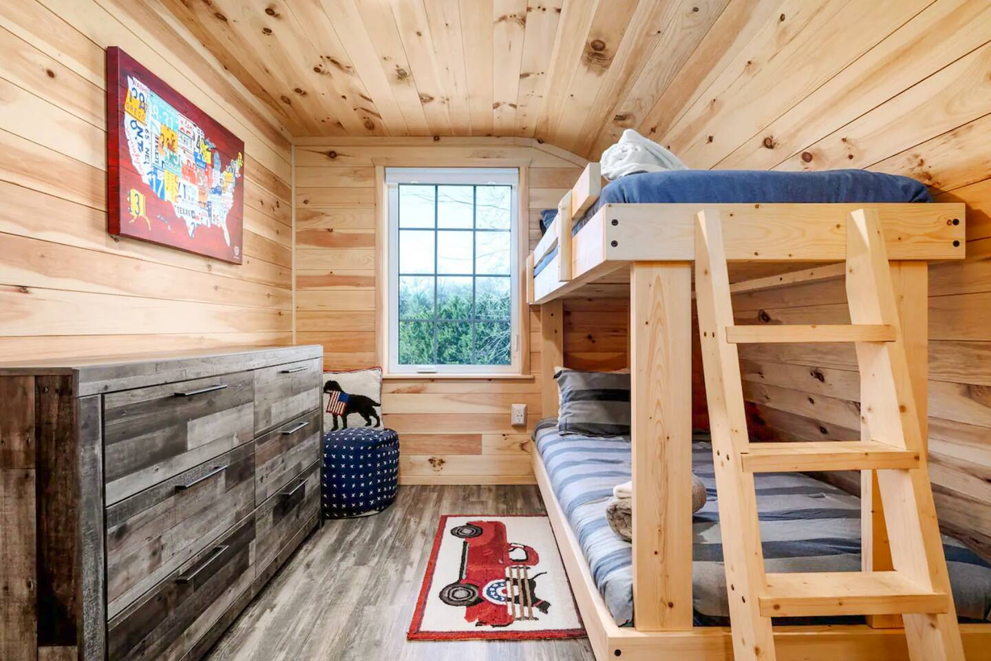 * **Upstairs:** You'll find two bedrooms and a full hall bathroom. One bedroom has a king bed with two trundle beds, and the other features two queen beds.