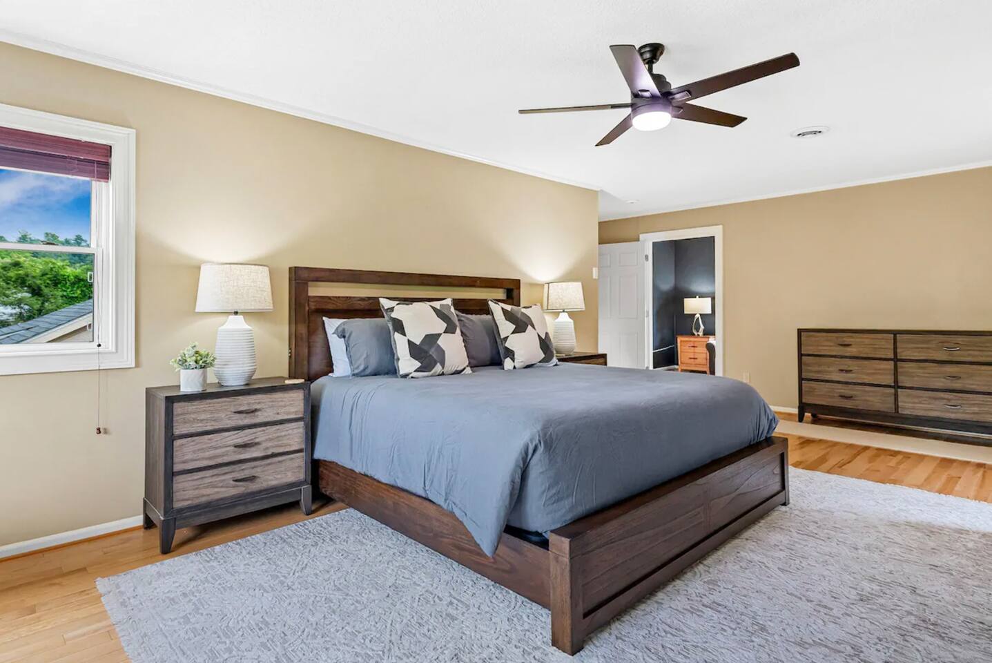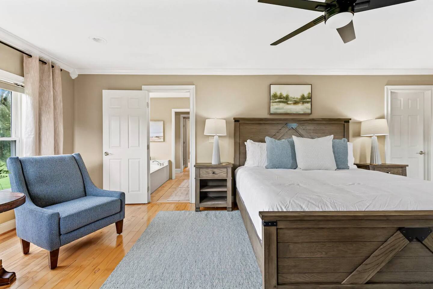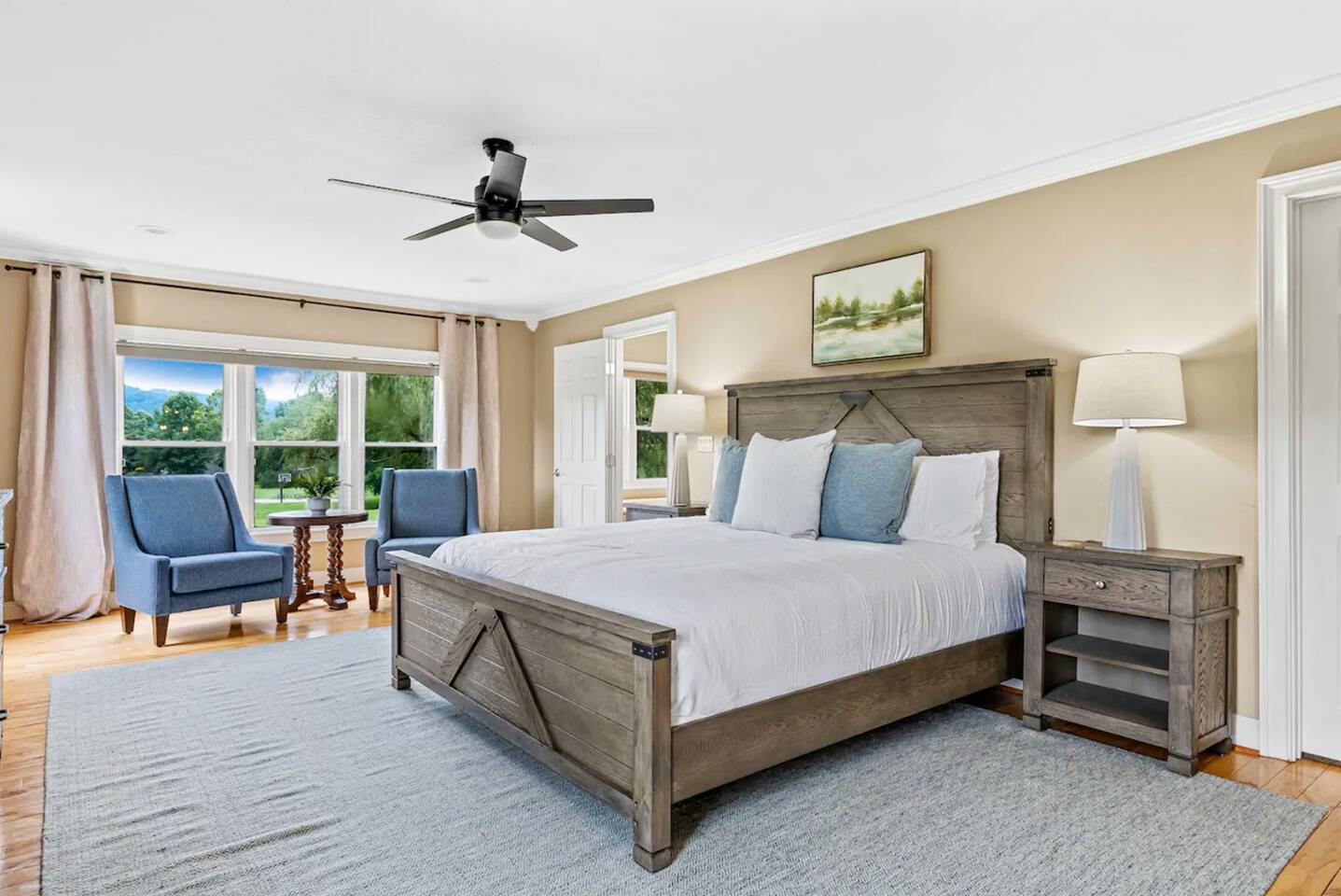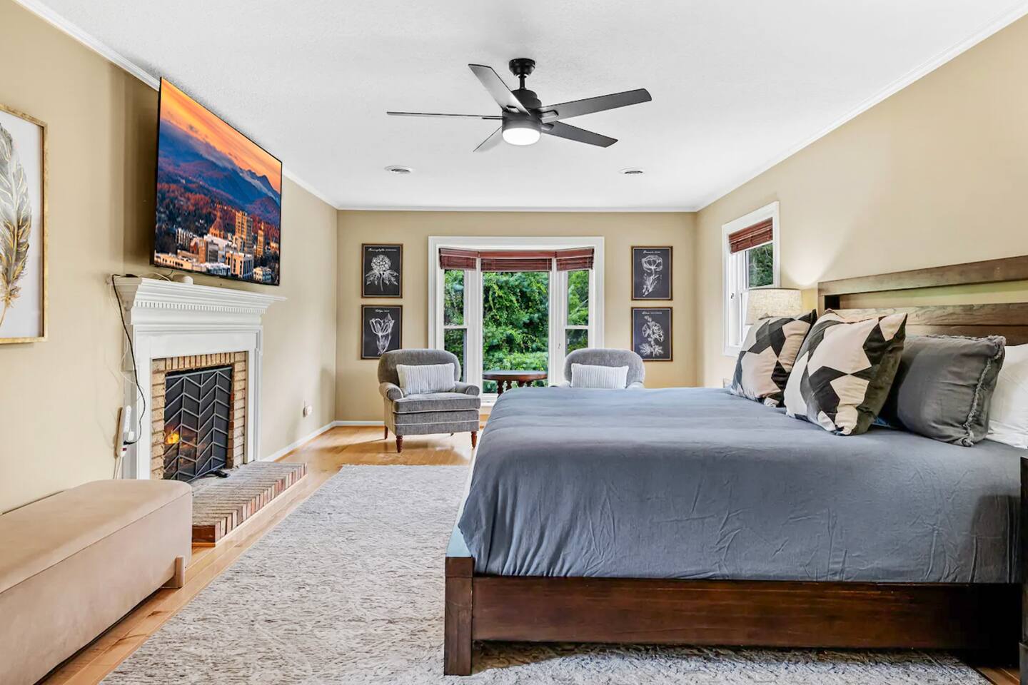 * Second Primary Suite (Bedroom #3): King bed, wood-burning fireplace, and en-suite bathroom.