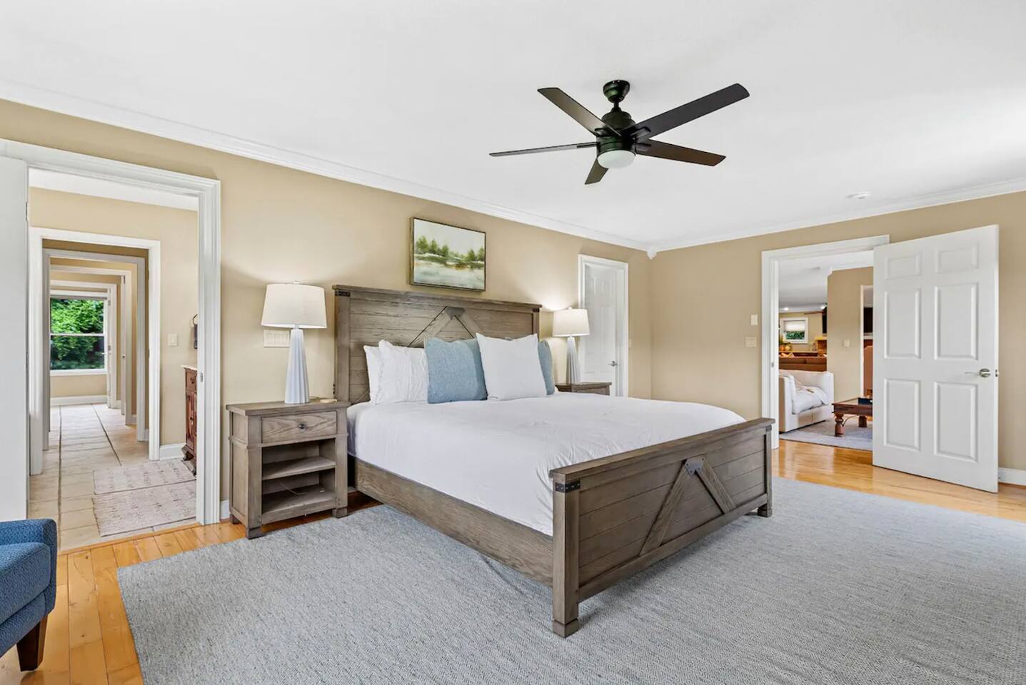 Guests will have exclusive and private access to the entire 7-bedroom home, the fully fenced backyard, and all private amenities. This includes the pool, hot tub, tennis/pickleball court, and direct access to the private lake across the street.